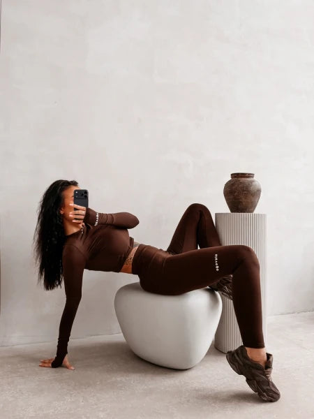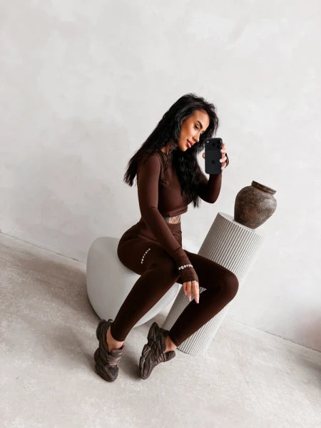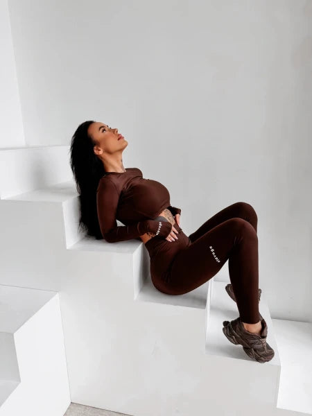 Komplet dopasowany wykonany z elastycznego, miękkiego materiału zapewniającej maksymalny komfort i swobodę ruchów. Minimalistyczna forma z subtelnym brandingiem OLAVOGA podkreśla nowoczesny, sportowo-kobiece charakter, a krótki top i legginsy tworzą spójną, sylwetkową całość. Ważne aspekty: dopasowany, podkreślający sylwetkę krój, elastyczna, miękka i komfortowa tkanina, krótki top z długim rękawem, legginsy z wysokim stanem, subtelne logo OLAVOGA.